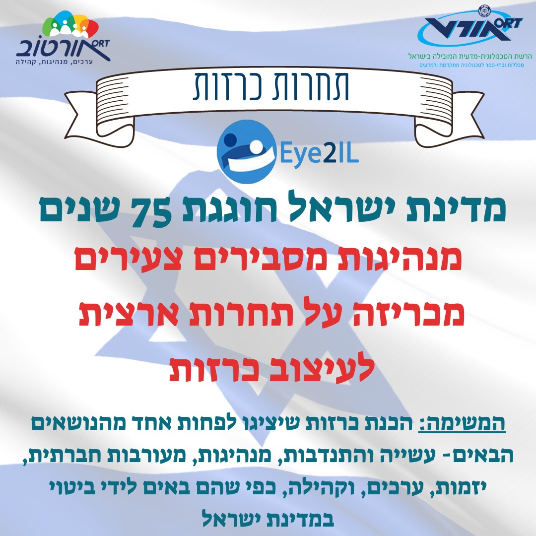 לרגל חגיגות 75 שנה למדינת ישראל, וכחלק מההסברה הישראלית של המסבירים הצעירים שבתכנית Eye2Israel, נפתחה תחרות כרזות חגיגית שאליה הוזמנו להשתתף גם תלמידים מבתי הספר של