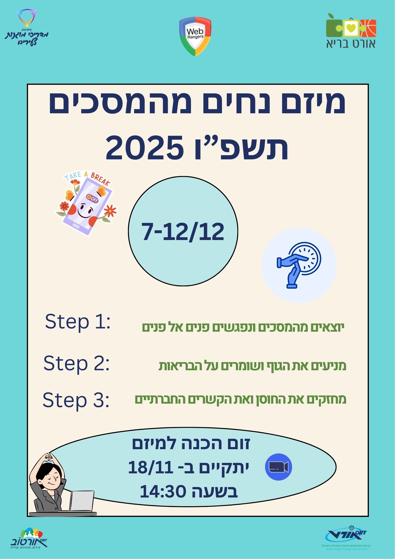מיזם נחים מהמסכים שמתקיים כבר ארבע שנים, פעל בשלוש תכניות של אורטוב: שומרי המסך, אורט בריא ומדריכי מוגנות צעירים