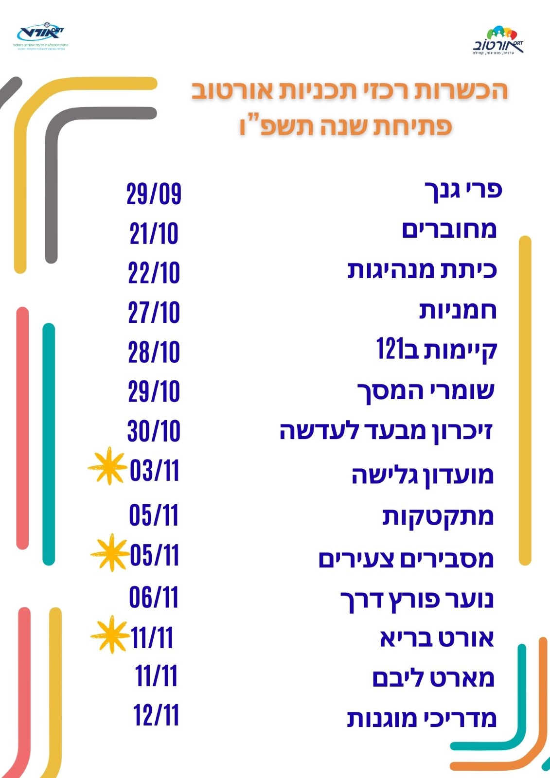 שמחים להגיש לכם ערכה של מערכי פעילות לתשפ"ה המבוססים על ימי לוח ומיזמים שנתיים בתכניות אורטוב